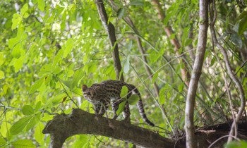 PETEN, Guatemala—When the rescue crate door was opened, the margay cat ( Leopardus wiedii) took a glimpse of Yaxha Nakum Naranjo National Park, before jumping out and immediately climbing up a tree towards freedom. The small nocturnal wild cat had spent several weeks rehabilitating after being