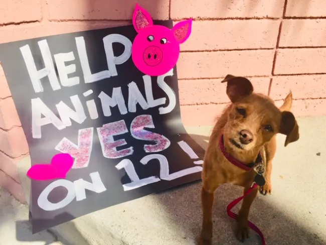 VICTORY! In California, voters have approved Proposition 12, a historic measure that will improve the lives of tens of millions of farm animals by prohibiting cruel cage confinement of egg-laying hens, pigs used for breeding, and calves raised for veal in small cages that immobilize them their entire lives.
