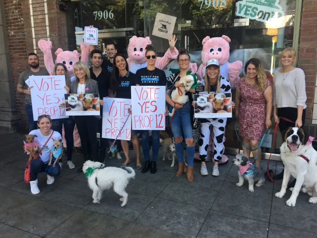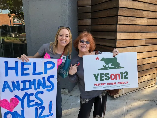 Members of our team mobilizing for Yes on Prop 12 in California.[/caption]
