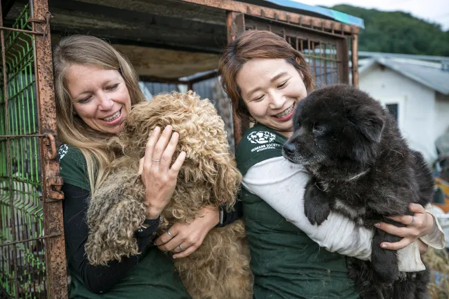 South Korea is unique in that it is the only nation in which thousands of commercial farmers actually raise dogs for human consumption. The approach we have taken here is multi-pronged: we conduct public awareness campaigns, lobby local and central governments to end the dog meat trade, and we conduct grassroots work to save animals, shutter farms, and help the farmers transition to humane livelihoods – a model that we hope the South Korean government will adopt to phase out this cruel trade.