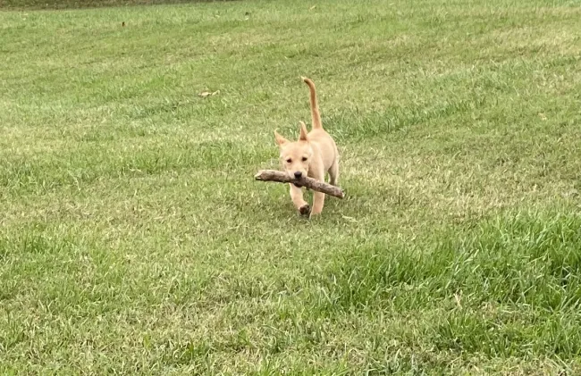 Lou Lou, a playful four-month-old pup, was adopted by HSI Senior Vice President Anna Frostic, and is settling in great. Anna tells me that Lou Lou, short for Saeloun, which means “new” in Korean, went straight from her long flight to playing in the park.