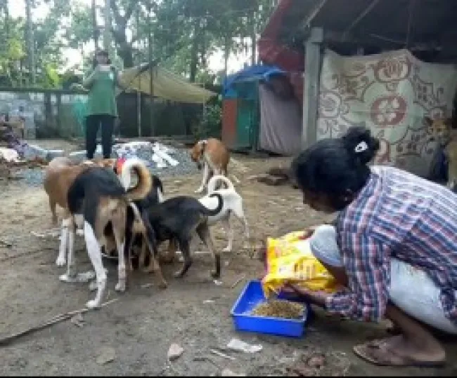 Sally Varma says: “Sunitha’s bond with her dogs is unbreakable, but she’s struggling without help so HSI was keen to check in on her so that she and her dogs don’t go hungry.”