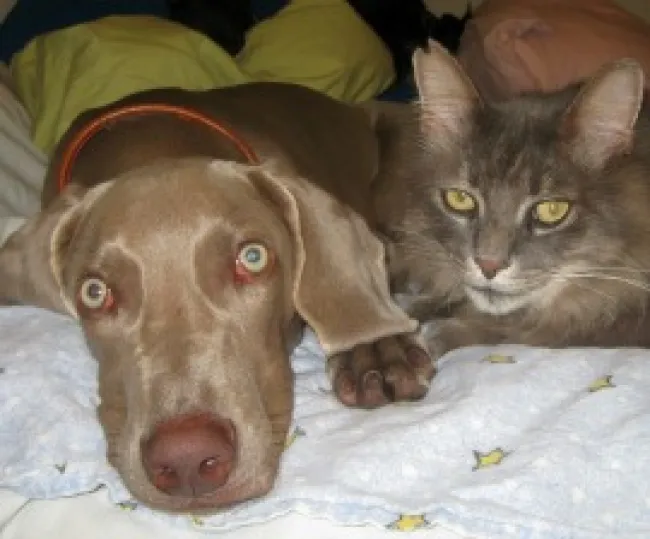 Finnegan, another rescued puppy, has befriended the semi-feral cat who shares his new home.