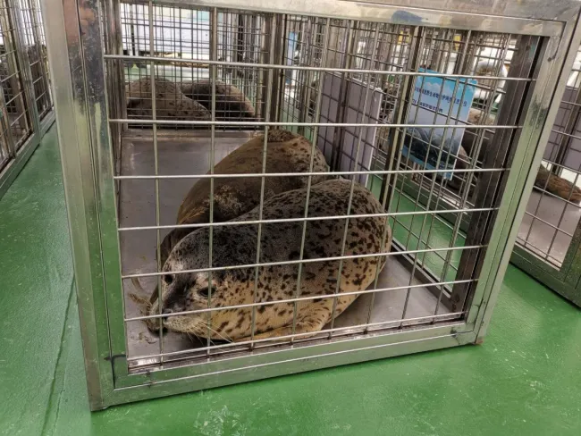 LONDON – Thirty-seven spotted seal pups have been released back to wild in China three months after Dalian police found the stolen animals starving and dying in a shed at a remote coastal farm in the village of Hutou, Wafangdian. The pups were snatched from the wild by traffickers for the aquarium industry and for display in commercial venues like shops and restaurants. Humane Society International, whose Chinese partner group VShine sent a representative at the release, praised Dalian’s law enforcement for saving the baby seals and arresting eight suspects.