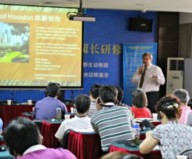 HSI invited world-renowned elephant researcher Dr. Joyce Poole and Vice Director of Houston Zoo David Brady to speak to 48 Chinese zoo directors, who also heard from three experts sent by Animals Asia.