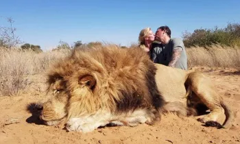 Couple kissing next to lion they killed spark global outrage, highlighting urgency for ending trophy hunting