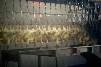 The conditions at crowded slaughterhouses also compromise the safety of the food placed on American dinner tables because cruel handling during slaughter increases the risk of food contamination, for example, from birds defecating in the scalder tank.