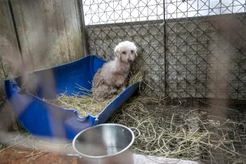 When we found the dogs and cats, many were in urgent need of veterinary care. They had been living in filthy surroundings, locked inside crates, and some were very sick. Many of the animals were emaciated and all were covered in fleas and suffering from skin, eye and ear conditions.