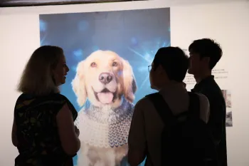 Flash forward to today, and we find Chewy not only enjoying a loving home with HSI President Jeff Flocken and his family but donning an intricate collar as a canine model for award-winning photographer, artist and dog advocate Sophie Gamand, whose new project shows dog meat farm survivors in a stunning new light.