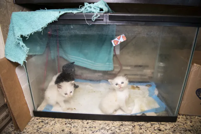 It was the smell that hit them the hardest as staff members from our Animal Rescue Team entered a house in Killeen, Texas, this morning, to help local law enforcement agents remove nearly 200 cats and kittens and several dogs from a situation of alleged large-scale neglect. “My eyes started to burn up within a minute of being inside,” said one responder, so strong were the fumes from animal waste. But that paled in comparison to the sight of the animals who lined the property wall to wall. Cats were everywhere, including many kittens, living in stacked cages and aquariums throughout the property. There were nursing mothers, and kittens who seemed sick and very thin, many with what appeared to be eye infections. A little black kitten had an eyeball that "looked like it’s going to explode,” as one veterinarian at the site said. Several kittens were in critical condition and had to immediately be transferred to a veterinary hospital. It appeared as though these animals had not received any veterinary care, or care of any sort. Litter boxes were overflowing with feces. Among the dogs we discovered was a chihuahua who was struggling to walk. https://www.youtube.com/watch?v=c4-6zMhmfOk No matter how often we conduct these rescues, and we’ve done hundreds over the years, it’s never easy to face or to stomach the suffering that the animals involved endure. Our Animal Rescue Team is often called upon by local law enforcement agencies to rescue animals from puppy mills and dogfighting operations. But some cases are not so black and white, involving as they do a blend of animal cruelty and neglect. These cases can be a challenge for authorities to prosecute. Fortunately, Texas has pretty strong cruelty laws and we are hopeful that the state will be able to hold those responsible for this situation accountable. Law enforcement entities and animal welfare organizations like ours also end up bearing the long-term costs of veterinary care and sheltering for the animals, something we’re trying to address with cost-of-care legislation in various states. A preliminary estimate shows that veterinary costs in this case will be significant. But it is the animals who have paid the biggest price.