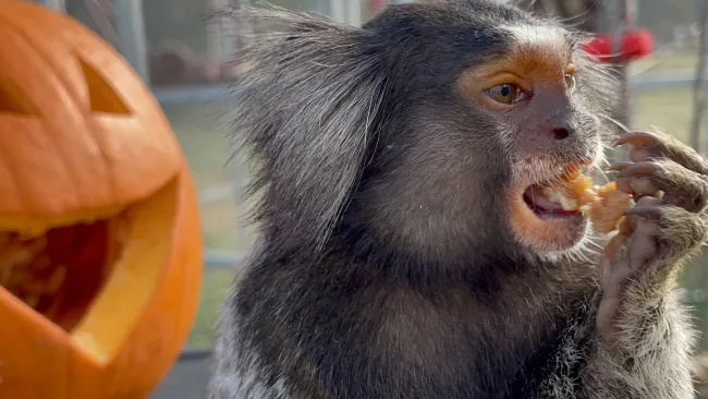 Some of the animals didn’t waste any time before tearing the pumpkins open and munching away. Abu the marmoset particularly loved snacking on some tasty bits of pumpkin.