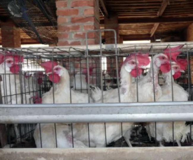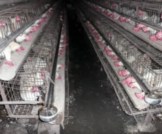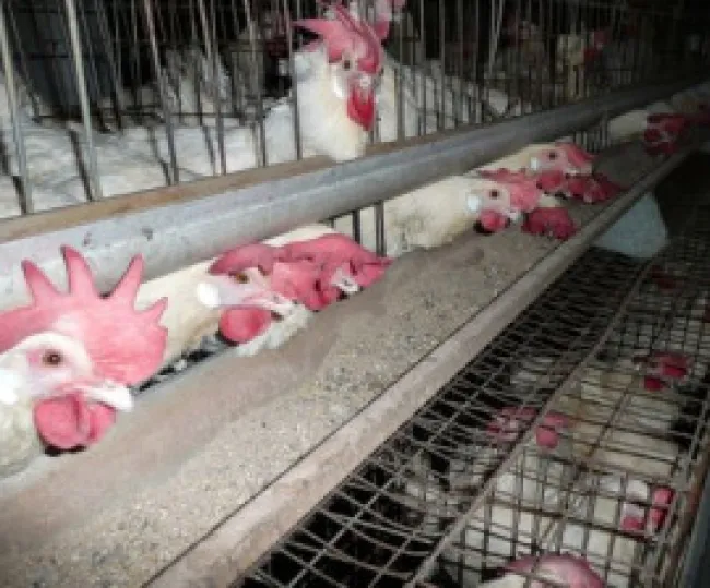 Egg-laying hens spend their lives confined in small, wire battery cages stacked several tiers high and extending down long rows. Each cage is so cramped that the birds are unable to stretch their wings, walk, or engage in many of their natural behaviors. More than 200 million laying hens in India are confined in this manner at any given time.