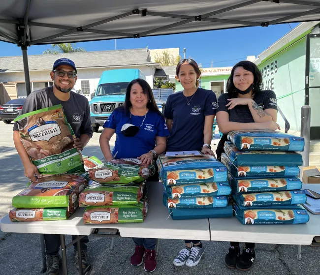 Pets for Life staff giving out pet food at our flagship location in Los Angeles.