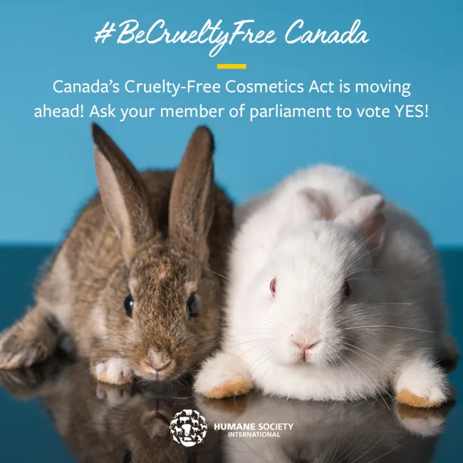 OTTAWA -- Canada is positioned to become the world’s 40th country to prohibit cosmetic testing involving animals following today’s introduction of the Cruelty-Free Cosmetics Act (Bill S-214) into the House of Commons. The bill was passed by the Senate and has been introduced by Conservative Shadow Minister for Health Marilyn Gladu. The bill is a product of years of advocacy led by Humane Society International, Animal Alliance of Canada and Lush Fresh Handmade Cosmetics, with backing from more than 750,000 Canadians from coast to coast.