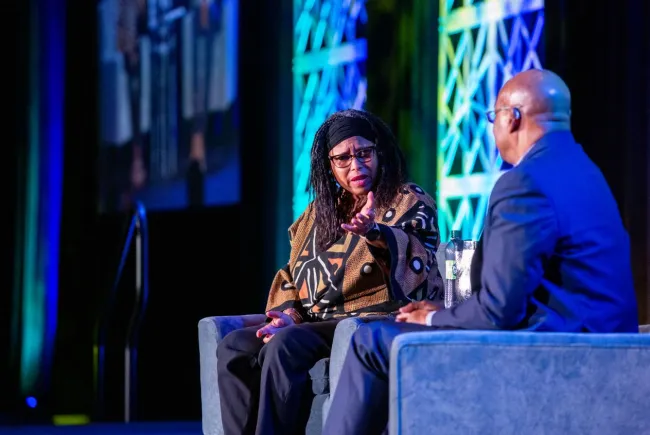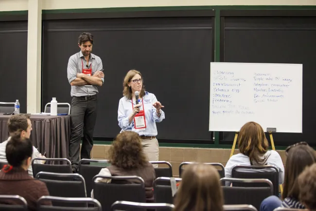 Dr. Lila Miller and Dr. Michael Blackwell at the welcome session for Animal Care Expo 2022.