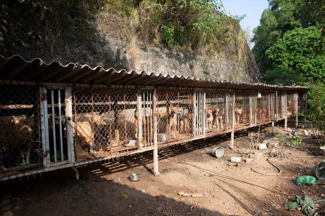 For the past seven years, Mr. Hung has been in the dog meat business in Viet Nam. He estimates that in that time, he has bought, sold and slaughtered as many as 20,000 dogs. Every couple of months, dog meat traders delivered around 50 puppies to Hung’s facility, where they were kept in filthy raised cages without veterinary care and fattened up to reach a suitable slaughter weight.