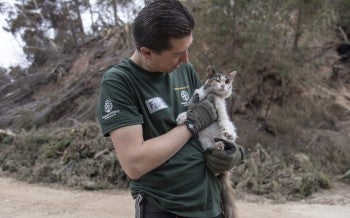 VIÑA DEL MAR, Chile—From a makeshift veterinary hospital set up in a local school in the wildfire-impacted city of Viña del Mar in Chile, the disaster relief team from animal charity Humane Society