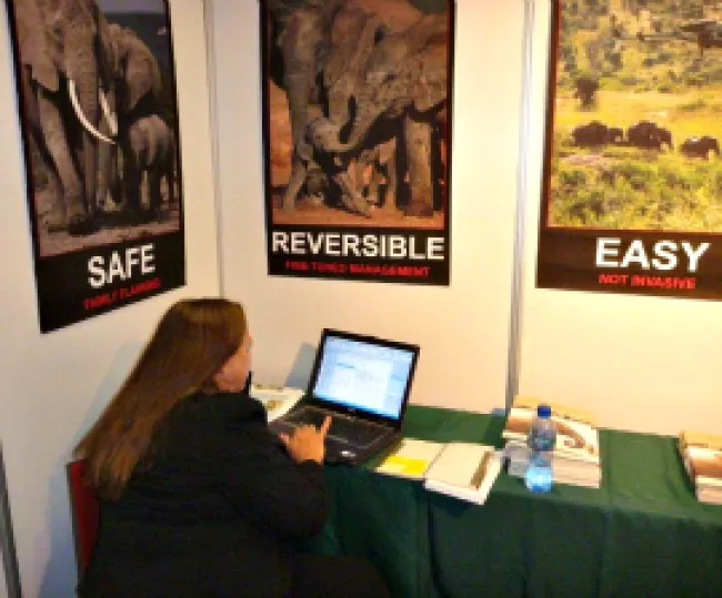 To this end, we presented our findings in July 2012 at the Fourth International Wildlife Management Congress in Durban, South Africa. During the conference, we held the first-ever international workshop on the use of elephant immunocontraception and set up a booth to display the outcomes of our work and distribute our new report. The workshop was presented by HSI’s elephant immunocontraception team, comprised of the world’s foremost experts on this topic. Our goals were to illustrate the use of immunocontraception, provide an understanding of the science behind it, explain its practical application, and describe how it is currently being utilized. Also included was an exercise that allowed participants to plan their own immunocontraception programs for a hypothetical population.