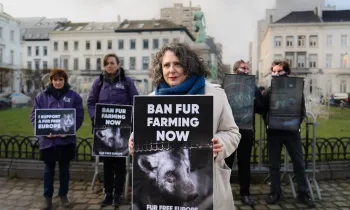 BRUSSELS―With just a week to go before the European Commission is due to deliver its formal response to the European Citizens’ Initiative petition for an EU-wide fur farming ban, animal protection organizations, members of the Fur Free Alliance and MEPs gathered opposite the European Parliament to
