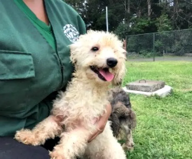 Uno de los perros rescatados, ahora limpio y listo para su nueva vida. Amanda Chaves/HSI