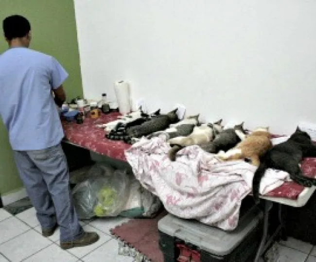 • Cats lined up recovering after surgery. Alex Rothlisberger/HSI