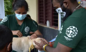 DHARWAD —Veterinarians from Humane Society International/India went door-to-door in the remote villages of Dori and Dopenatti in Dharwad, southwest India for World Rabies Day, giving free anti-rabies vaccinations to owned, yet free-ranging dogs as part of a regionalised drive to better protect both
