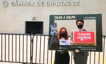 Entrega el conejo #Ralph a la Cámara de Diputados más de un millón de firmas en favor de poner fin a las pruebas cosméticas en animales