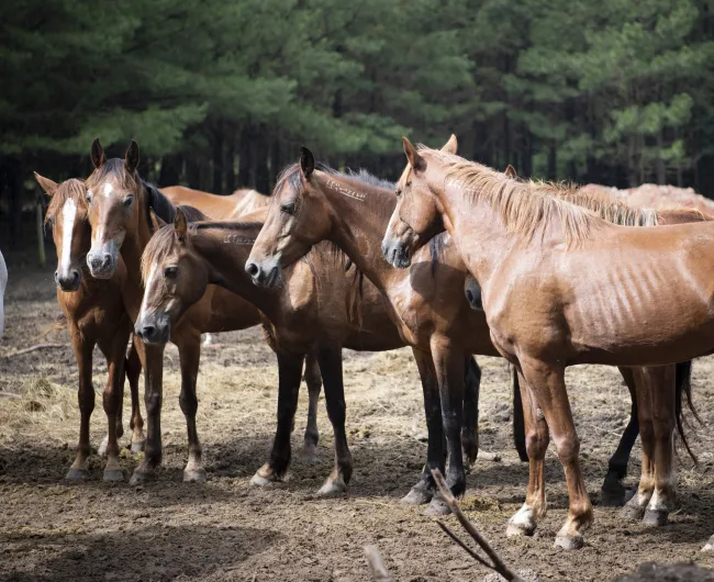 In June, Humane Society of the United States responders were called in to assist with the rescue of more than 150 horses, mini-horses, mules and donkeys on a property in Camp County, Texas. Among the animals were nine mustangs, who had been removed from the wild.