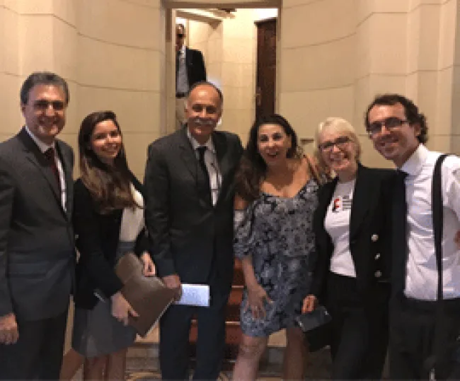 Da esquerda para a direita: Reynaldo Velloso e Tulasi Ahrends da Ordem dos Advogados do Rio de Janeiro; Paulo Ramos, autor do projeto de lei 2714-A / 2014; Juiza Rosana Navega; Elizabeth MacGregor do Fórum Nacional de Proteção e Defesa Animal e Helder Constantino da Humane Society International; após o voto que revogou o veto do governador. HSI