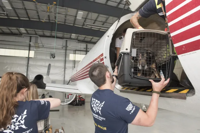 Earlier this month, you saw Emma’s photograph leading my post on a rescue that was taking place in Jones County, Mississippi. Our Animal Rescue Team, working with the Jones County Sheriff’s Department, the Mississippi Department of Wildlife, Fisheries and Parks and Southern Cross Animal Rescue, removed Emma and 54 other dogs and 34 cats from the 161-acre property that day, beginning a new chapter in their storied lives. This past weekend, these animals continued on their journey to get the love and care they deserve, when we arranged for their transport via Wings of Rescue from a temporary shelter in Mississippi to an airfield in Virginia. The animals were then transferred into the care of shelter and rescue partners.